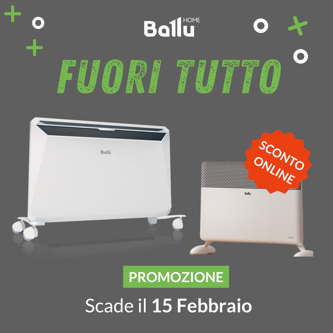 Ballu riscalda ambienti domestici e commerciali dai 5mq ai 45mq con soli € 1,60 al giorno(1).